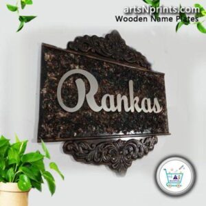 Add a touch of luxury and sophistication to your entrance with the “Rankas” premium designer wooden name plate, elegantly crafted by artsnprints.com.